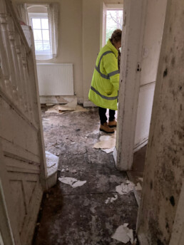 One property had had a pipe burst in the loft during a cold snap. Because it had been empty, the damage and mould were severe. It took two weeks of forced drying by a professional drying company before the property had its drying certificate and we were able to start work.